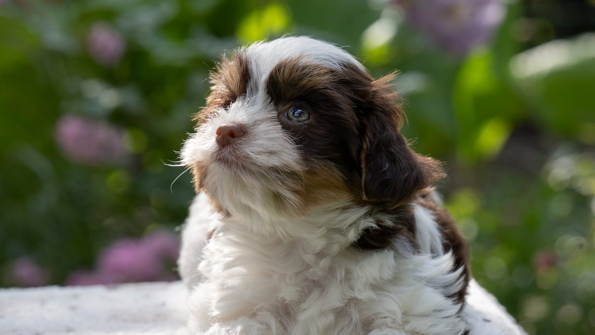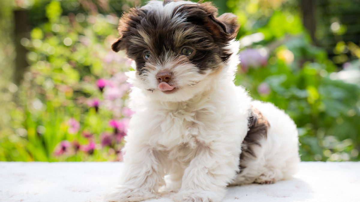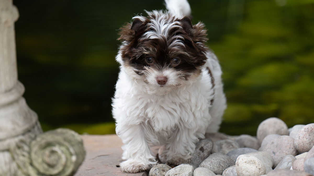Acquired in Scotland, Jana’s parents were of champion lineage imported from Russia. Her dam was a Biro Yorkshire Terrier, (chocolate tan and white parti) while her sire is a Biewer Yorkshire Terrier, adorned in a blue, tan, and white coat.