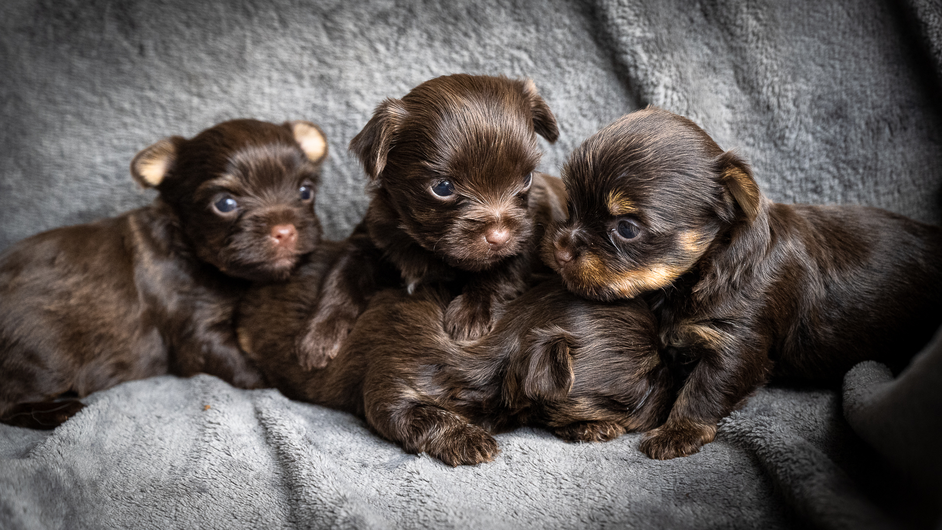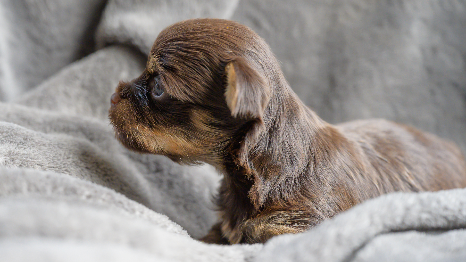 Immerse yourself in our Chocolate Yorkie puppy gallery, where every image captures the enchanting allure of our delightful chocolate yorkie pups, with their rich, brown chocolate coats and captivating hazel eyes.