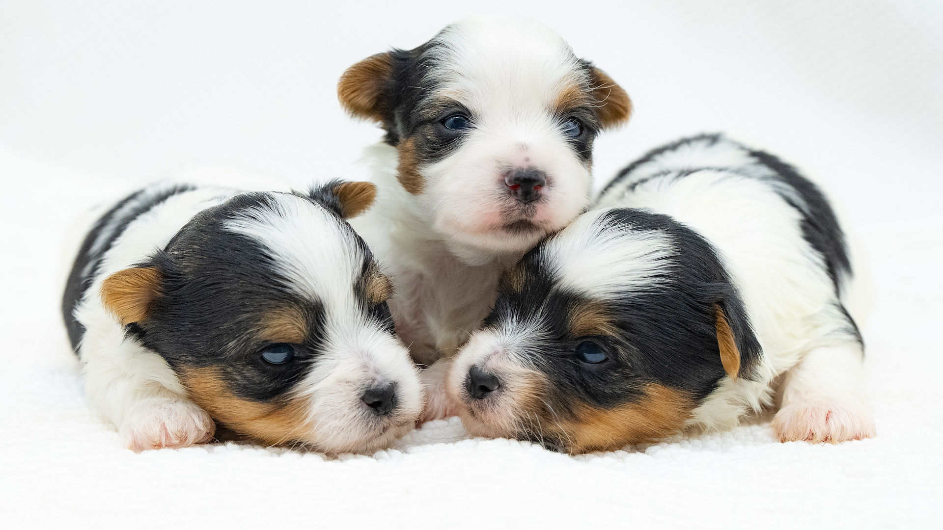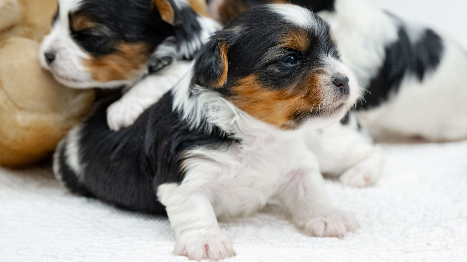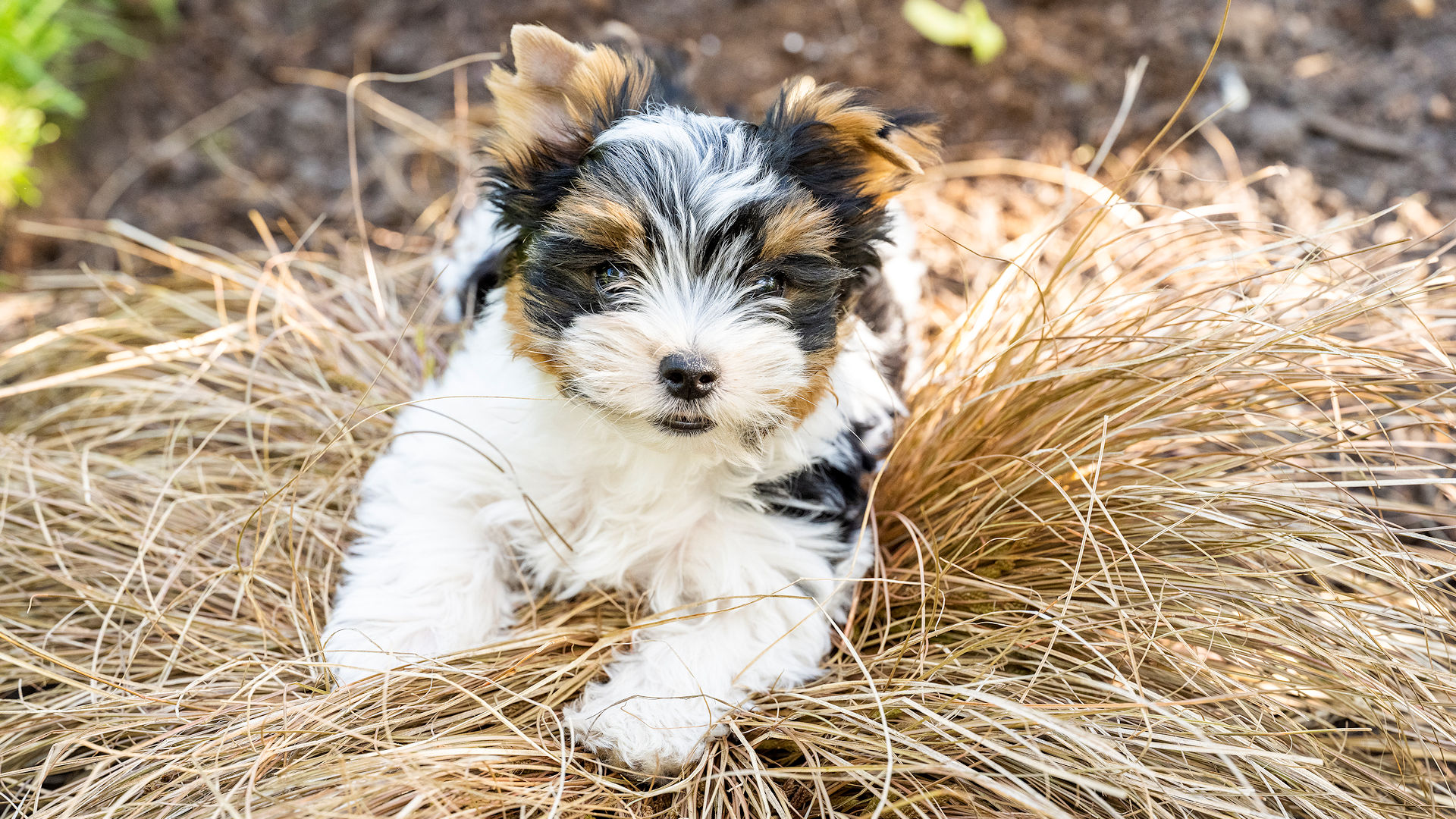 Our exquisitely handsome “Dante” is a prime example of the Biewer Terrier breed. He is without exaggeration, the sort of Biewer Terrier who makes people stop mid‑sentence and say, “Oh… he’s gorgeous.” He sports the classic tri‑colour coat of black, tan, and white with the kind of effortless glamour usually reserved for shampoo commercials. His coat flows, his markings are beautifully defined, and his large, dark, almost‑black eyes could charm the biscuits out of anyone’s pocket. Add in his neat, upright pricked ears, and you have a dog who looks permanently ready for his close‑up.
